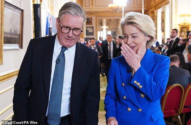 Keir Starmer podría acercar mucho al Reino Unido a reincorporarse al mercado único de la UE, sugirió un aliado cercano. En la imagen, el Primer Ministro con la presidenta de la Comisión de la UE, Ursula von der Leyen.