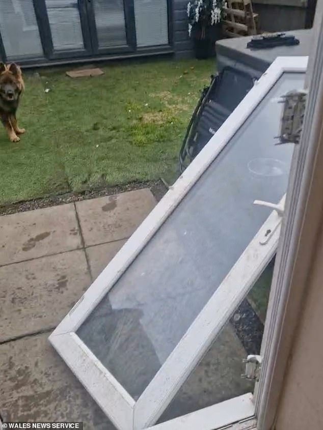 Koda, de nueve meses, no pudo arrancar la ventana francesa de sus bisagras después de estrellarse tantas veces contra ella