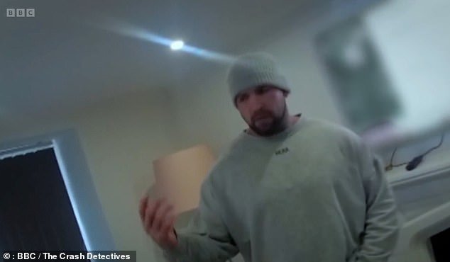 Imágenes impactantes muestran al desvergonzado conductor tratando de evitar la culpa cuando la policía llegó a su casa en Georgetown, Tredegar, para interrogarlo.