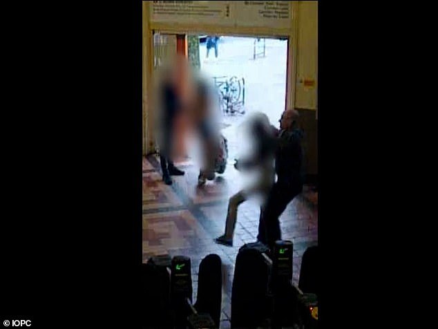 Un vídeo de la estación de metro de Camden Road muestra a PC Young empujando a la joven a través de la barrera de entrada y agarrándola por el cuello.
