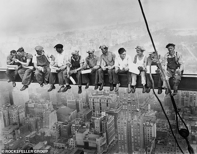 Pero lo que hizo que este almuerzo ordinario fuera tan extraordinario es el hecho de que todos estaban sentados en una viga estrecha, aparentemente desconectada del edificio RCA en construcción en el centro de Manhattan, flotando a 840 pies sobre la ciudad.