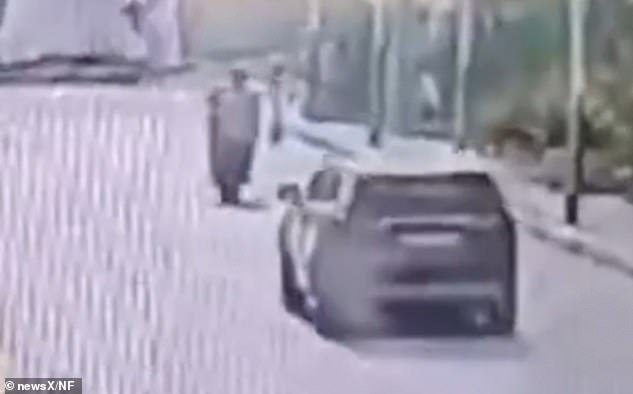 Este es el momento en que un turista ucraniano embistió con su coche desde una motocicleta a dos ladrones armados después de que rompieron su ventana y le robaron 31.000 libras esterlinas a punta de pistola.