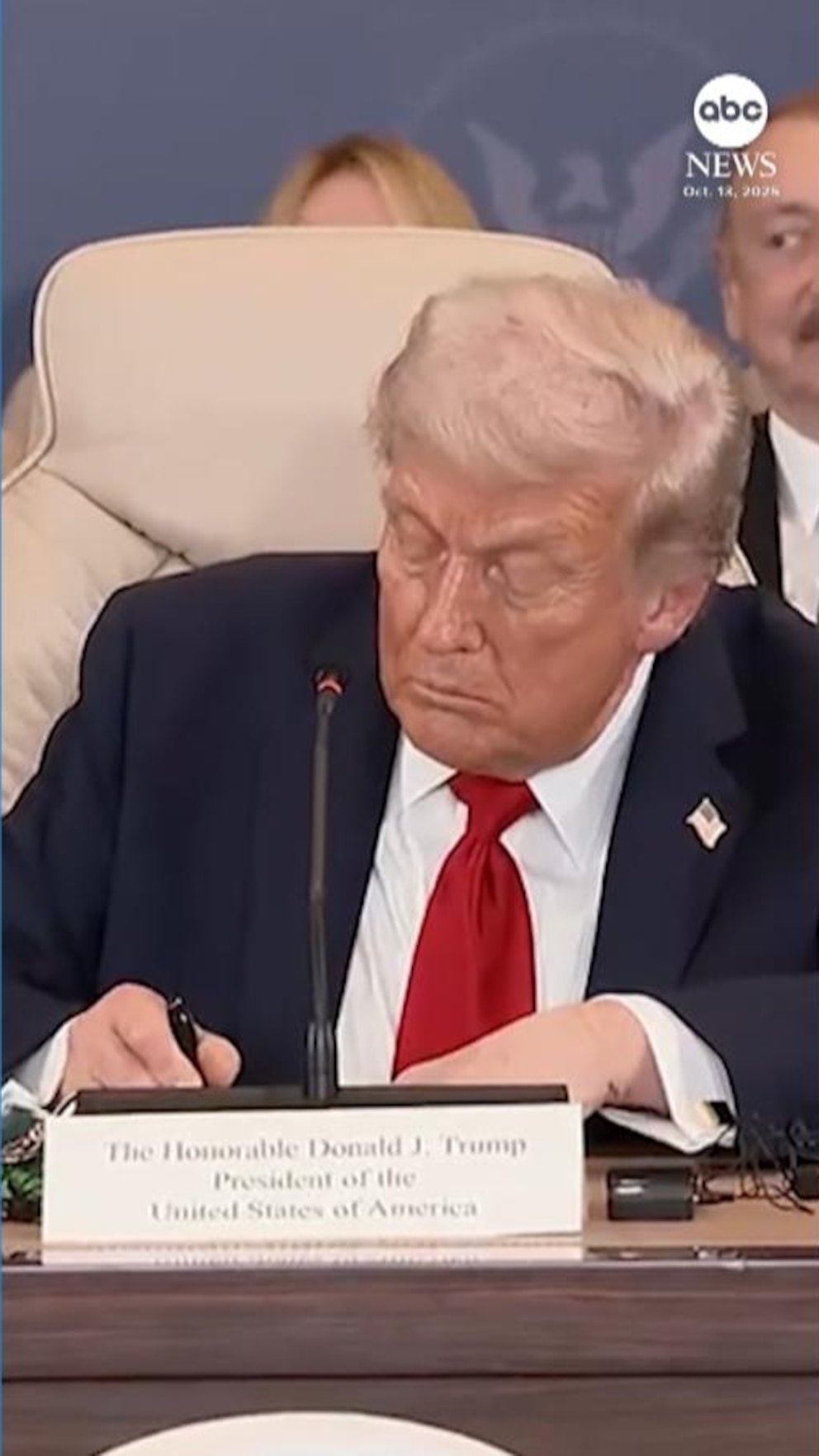 El presidente Trump asistió a una ceremonia de firma en la cumbre de paz en Sharm el-Sheikh, Egipto, que marcó la primera fase del acuerdo de alto el fuego entre Israel y Hamás.