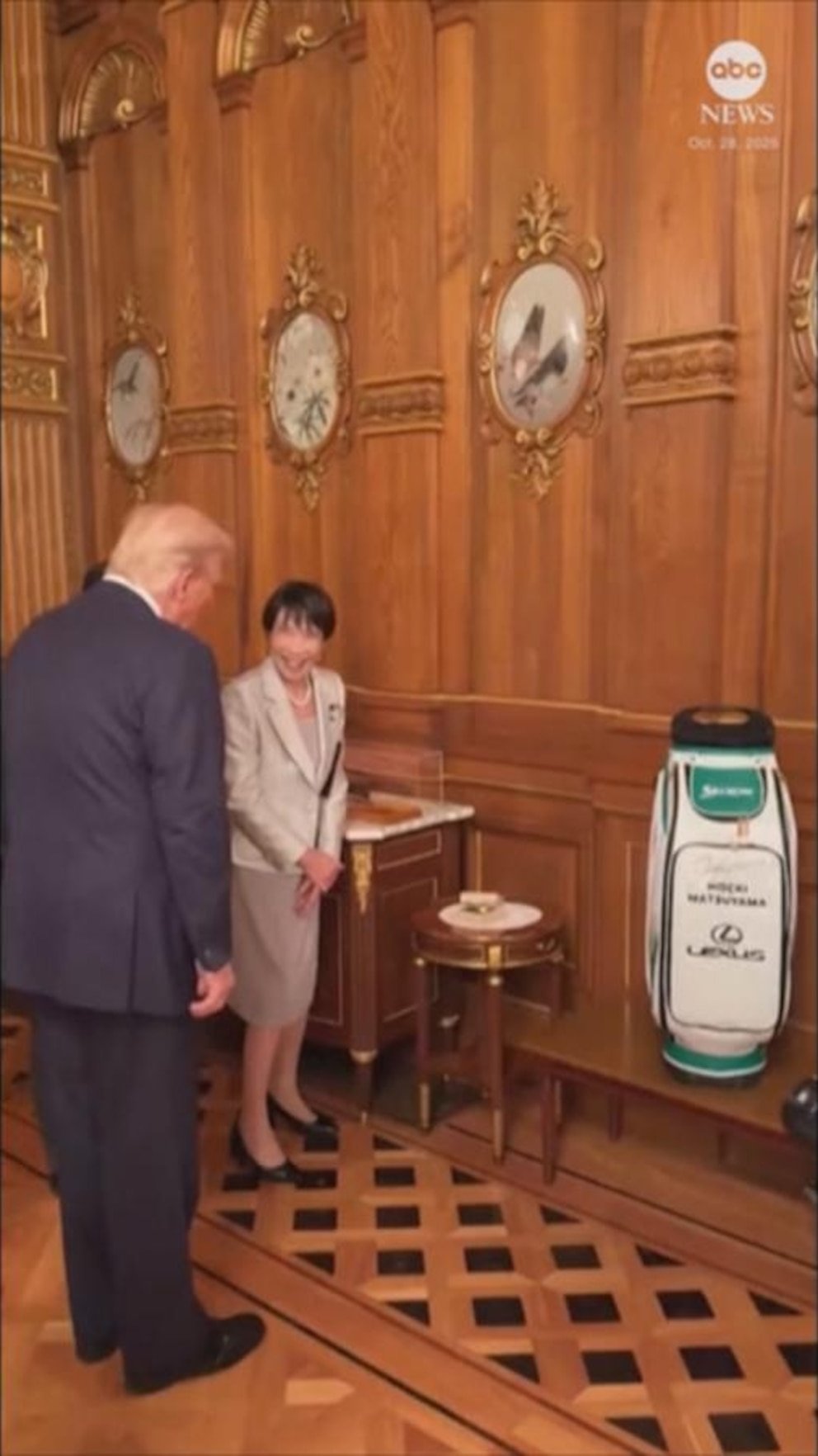 El primer ministro japonés, Sanae Takaichi, le regaló al presidente Trump el putter del difunto primer ministro japonés Shinzo Abe durante su visita a Tokio.