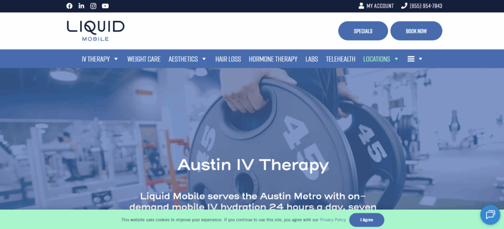 Móvil líquido IV combina un servicio móvil con un centro de bienestar local en el área metropolitana de Austin y Pflugerville. Esta configuración híbrida brinda flexibilidad a los clientes que desean la opción de visitar o recibir terapia en casa. Las reseñas locales destacan la excelente atención y las amables enfermeras que adaptan su enfoque a las necesidades de cada paciente.