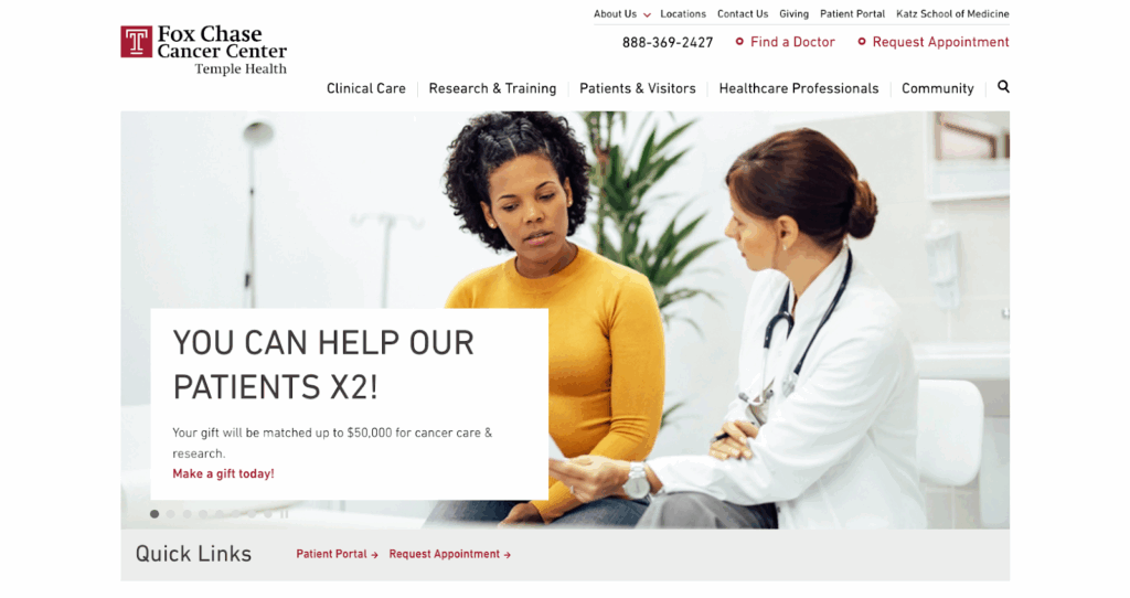 Los médicos suelen pensar en trabajar allí. Centro Oncológico Fox Chase porque la institución tiene un compromiso de larga data con la excelencia clínica. El compromiso del personal de brindar una excelente atención al paciente mientras realizaba investigaciones clínicas le valió al centro el reconocimiento del Instituto Nacional del Cáncer. Los profesionales de la salud que quieran mejorar su educación integral sobre el cáncer pueden unirse a Fox Chase Cancer Center y a expertos con ideas afines que quieran lograr mejores resultados a través de la investigación en curso.